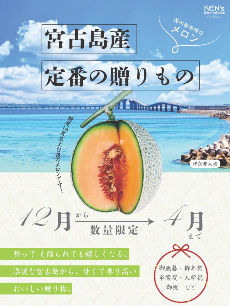 温暖な宮古島で育った、香り高く味の濃い特別なメロンをお届けします。